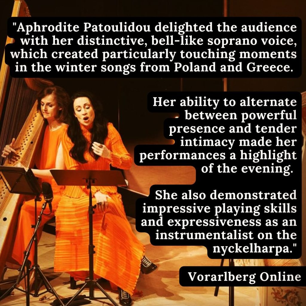 “Aphrodite Patoulidou delighted the audience with her distinctive, bell-like soprano voice, which created particularly touching moments in the winter songs from Poland and Greece.